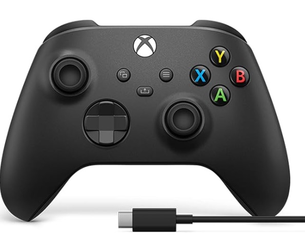 【同梱物】Xbox ワイヤレス コントローラー (カーボン ブラック) 本体(3.5mm ステレオ オーディオ ジャック付き)、 USB-C ケーブル (約 2.7m)