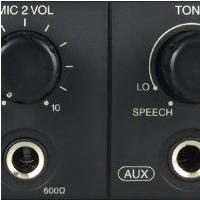 2つのマイク入力アンプには2つのマイクが接続できるようマイク入力が2つ搭載されています。音楽プレーヤーなどの外部機器を接続できるAUX入力端子もございますので、マイク2本にBGMや音源を流しながらのミキシング放送が可能です。