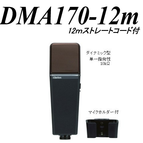 クラリオン製の10kΩダイナミックマイクのと、12mのストレートのマイクケーブルのセット構成品DMA170−12mです。優れた指向性と堅牢な構造で、観光バスでのアナウンスなどで活躍します。