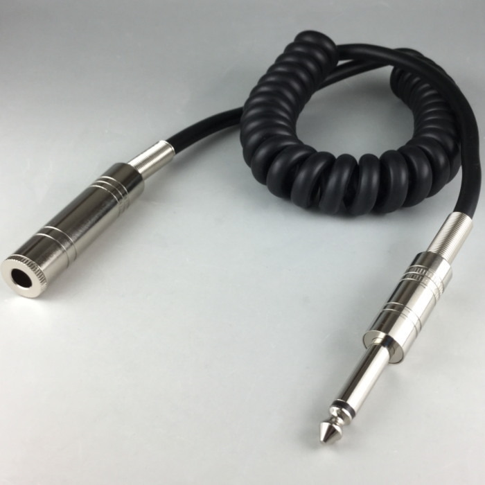 カールコード式の延長マイクコード珍しいカールコードタイプのマイク延長コードです。少しだけ伸ばしたい場合、狭い場所でコードをまとめたり、取り回しが困難な場合に重宝します。