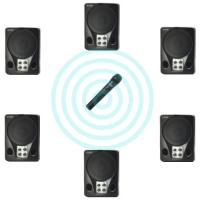 NZB−M810と該当ページの高感度ワイヤレススピーカーの組み合わせなら台数制限がありません。例えばワイヤレスマイク1本に対して、6台のワイヤレススピーカーというシステム構成も簡単に組み上げれます。