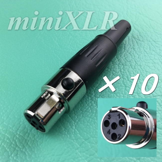 無線機用コネクターに採用されているミニXLRの4極メスコネクターです。4ピンでも配置が数種類あるので、掲載写真でピン配置を確認して下さい。このタイプはコネクター中央にピンがあります。こちらは10個セットの販売になります。