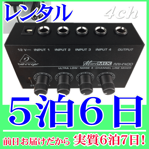ラインミキサー4系統入力5泊6日レンタル。前日着でお届けしますので、実質6泊7日となります。