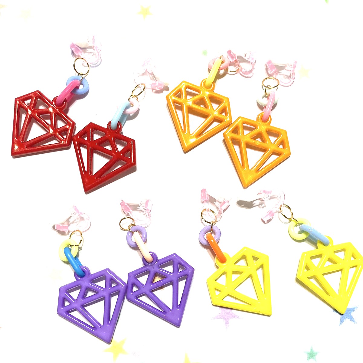 キッズイヤリング ダイヤ型 キッズアクセサリー 子供用イヤリング プラスチックイヤリングパーツ