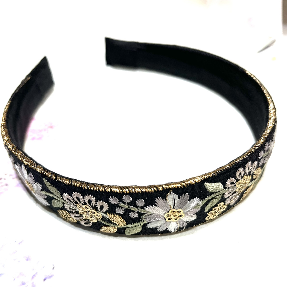 高級感ある刺繍生地を使用した太めカチューシャ