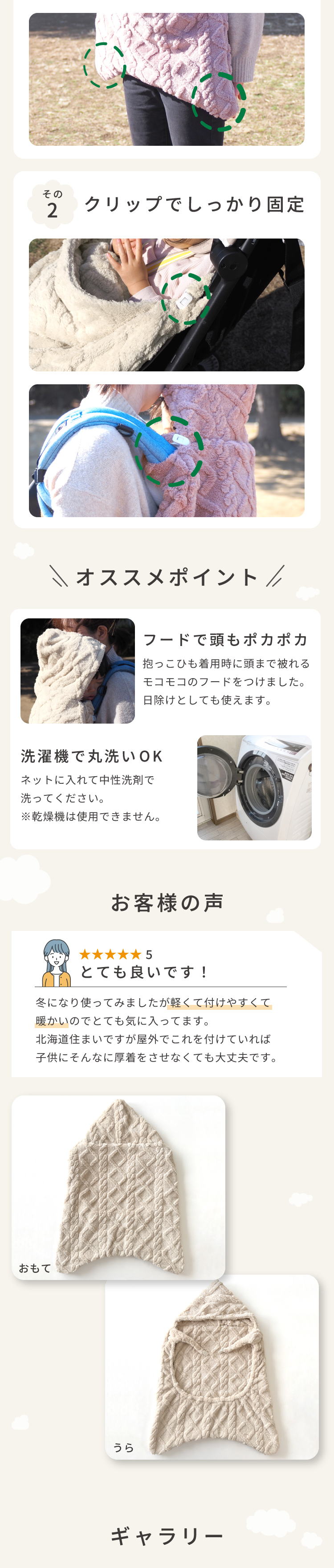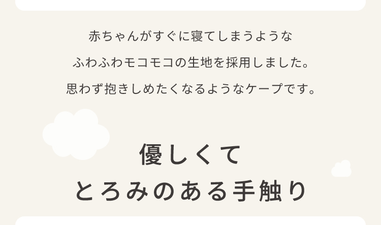 赤ちゃんがすぐに寝てしまうようなふわふわモコモコの生地を採用しました。