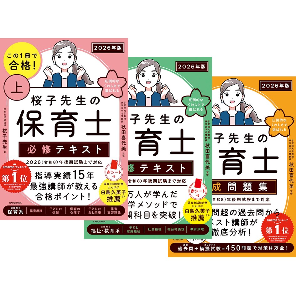 2026年版 この1冊で合格! 桜子先生の保育士 必修テキスト 上下巻 + 完成問題集 KADOKAWA