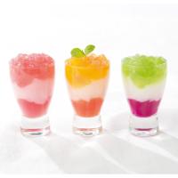 くちどけの良いジュレともちもちのフルーツわらび餅。爽やかなヨーグルトゼリーを挟んで、最後にとろりとしたフルーツソース。食べ進めるごとに味わいと食感が変化する、贅沢な3層パフェデザート。