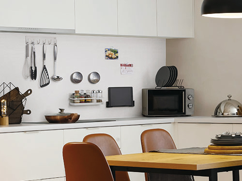 不燃マグボード上であればマグネット使用OK。壁を自由自在に使えるうえに下地に穴を開ける心配もありません