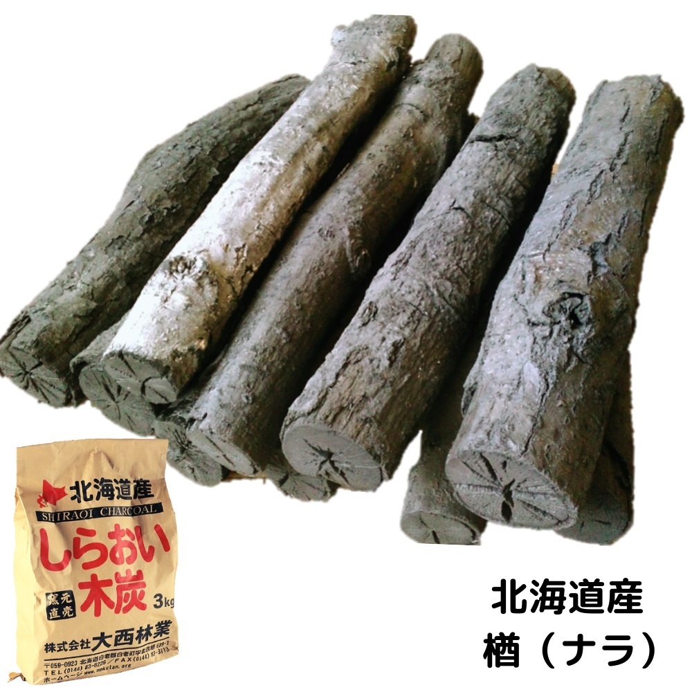茶の湯炭 3kg(楢・長炭30cm)しらおい木炭 国産・北海道産 菊炭