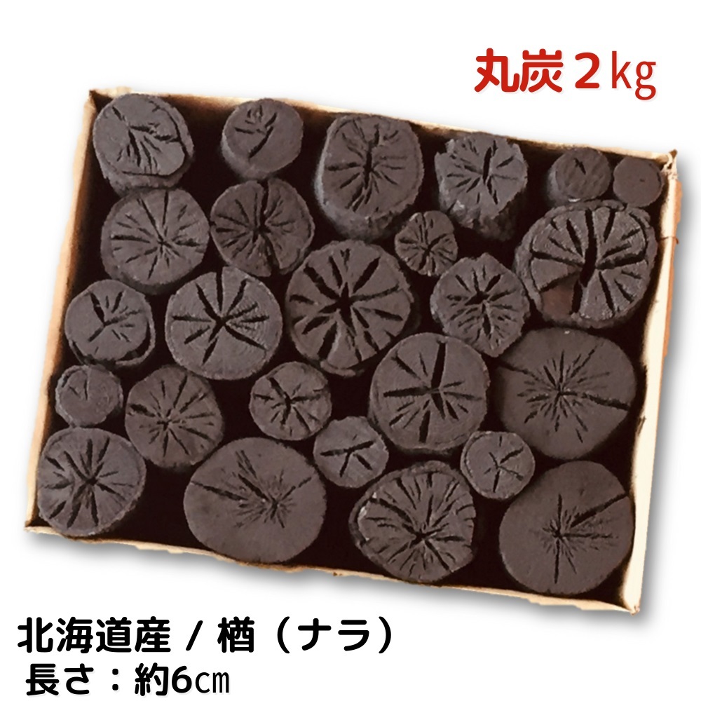 黒炭 しらおい木炭 2kg ナラ・丸炭 約6cm 国産 北海道産 茶道用道具炭 菊割れ 七厘・七輪用 炭