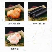■内容量:わか草コーン 5個/バターポテト 2個/タコ棒 1個/チーズ棒 1個/ジャコ棒 1個/ササガキ天 2個/白天 2個/生姜天 2個/玉ねぎ天 2個/チーズ巻 1個/花霞 1個