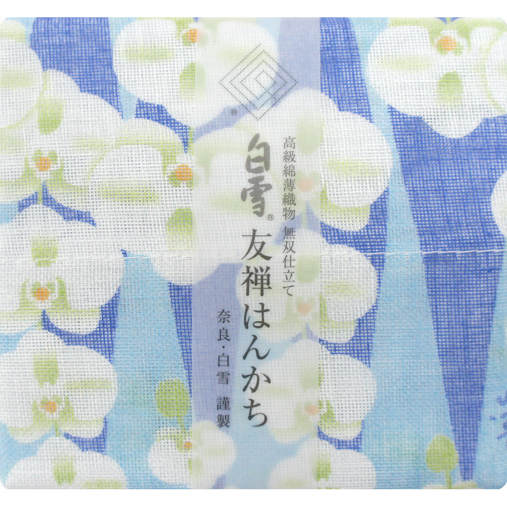 【奈良みやげ】白雪 友禅はんかち 胡蝶蘭 ブルー