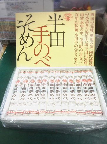 竹田製麺所の最高級品です。 原料の小麦は最高級の物を使用して、一番寒い時期に 作られました。 今期新麺入荷しました。 阿波のこだわり素麺 寒製黒帯 半田手延べそうめん 1.2kg (100g×12束入)