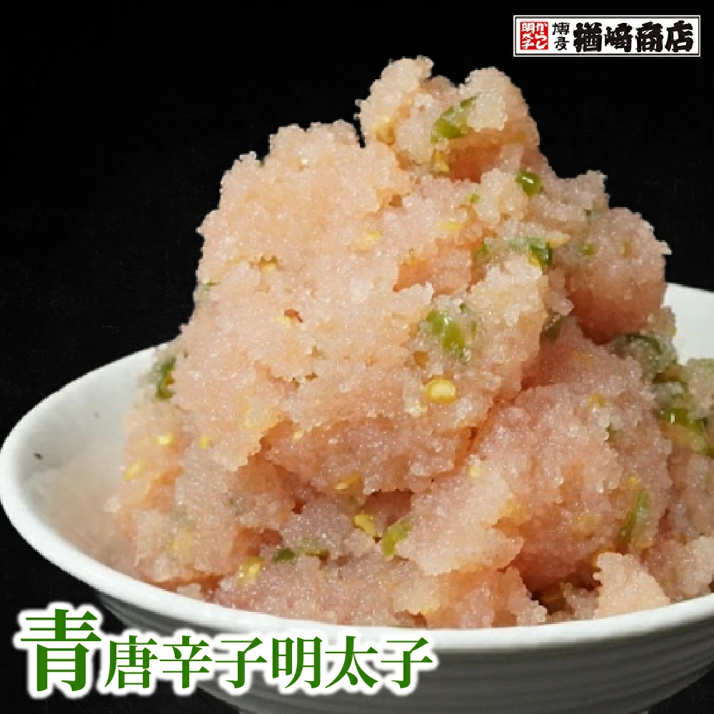 良質のたらこ(無着色)を丹念に吟味し、青唐辛子で作った当社自信の一品です。