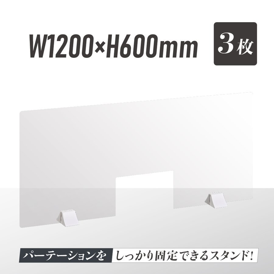 お得な3枚セット 透明パーテーション W1200×H600mm 商品受け渡し窓付き 仕切り板 受付 卓上パネル 滑り止め シールド abs-p12060-m30-3set
