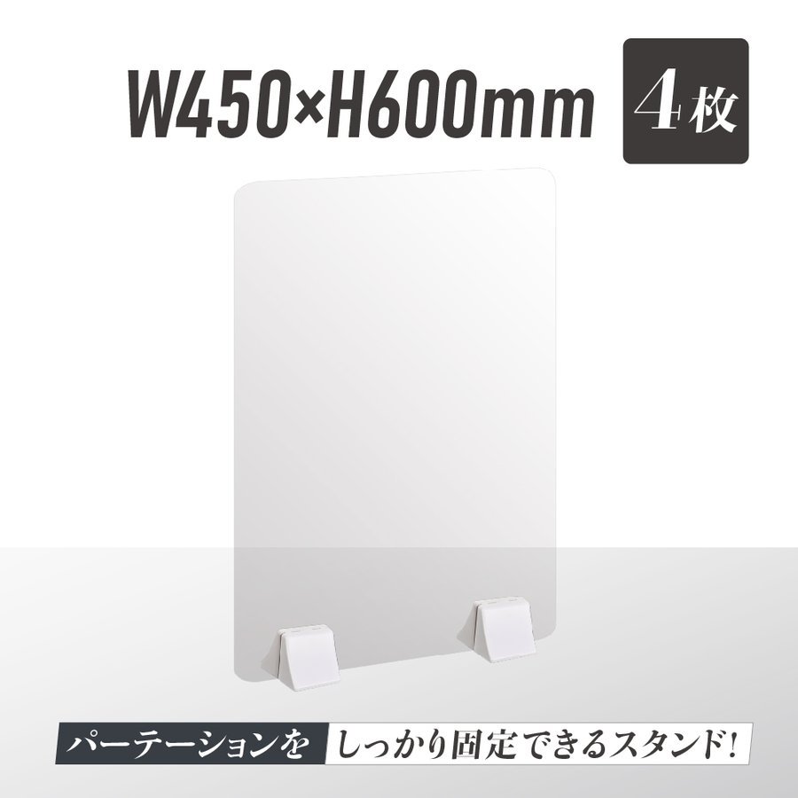 【お得な4枚セット】 差し込み簡単 透明パーテーション W450×H600mm 仕切り板 卓上 受付 衝立 間仕切り 卓上パネル abs-p4560-4set