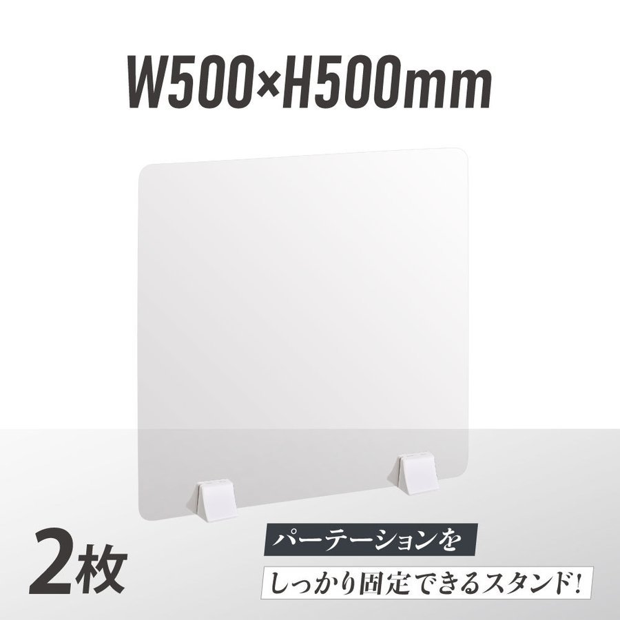 [2枚セット]差し込み簡単 透明 アクリルパーテーション W500×H500mm 仕切り板 卓上 受付 衝立 間仕切り 飲食店 abs-p5050-2set