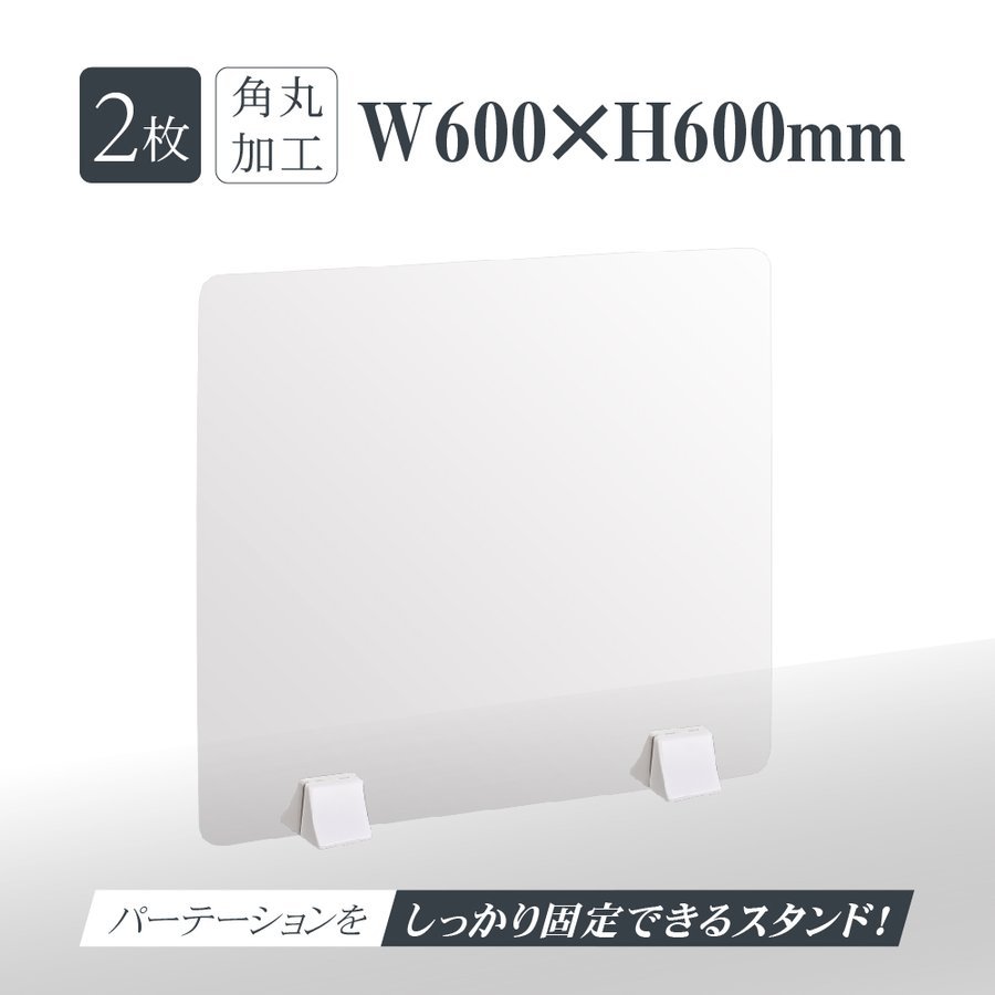 お得な2枚セット 透明パーテーション W600×H600mm 仕切り板 卓上 受付 衝立 間仕切り 卓上パネル 滑り止め シールド abs-p6060-2set
