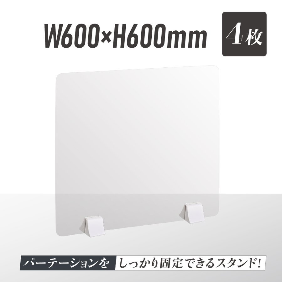 お得な4枚セット 透明パーテーション W600×H600mm 仕切り板 卓上 受付 衝立 間仕切り 卓上パネル 滑り止め シールド abs-p6060-4set