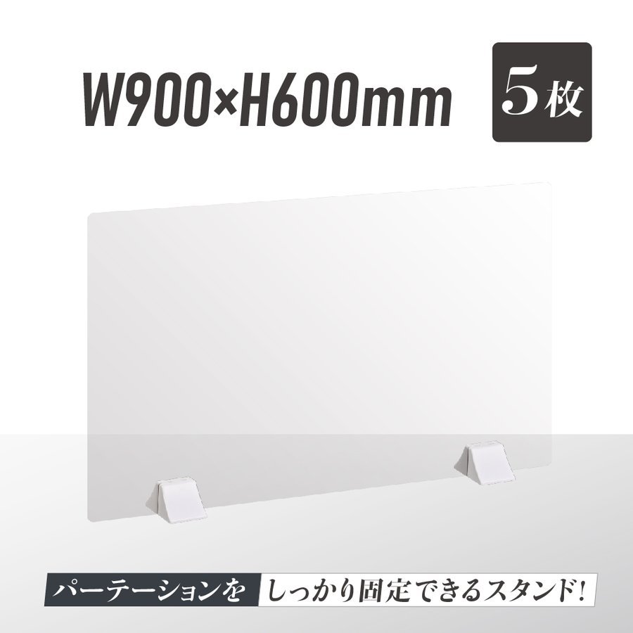 お5枚セット 透明パーテーション W900×H600mm 仕切り板 卓上 受付 衝立 間仕切り 卓上パネル 滑り止め シールド abs-p9060-5set