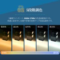 【5段階調色】5種類ライトモード。3000k-5700kの色温度範囲のうち、快適に目を守り、仕事や学習の効率アップを図る調色です。