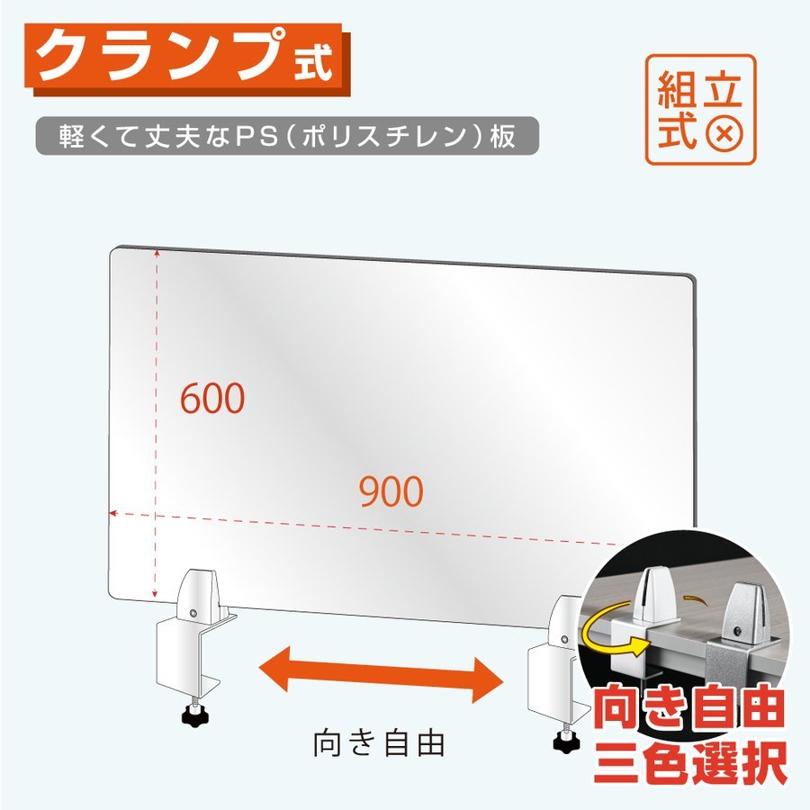 クランプホルダー 付き飛沫防止アクリルパーテーションW900xH600mm ポリスチレン板 採用【受注生産 返品交換不可】laps-9060