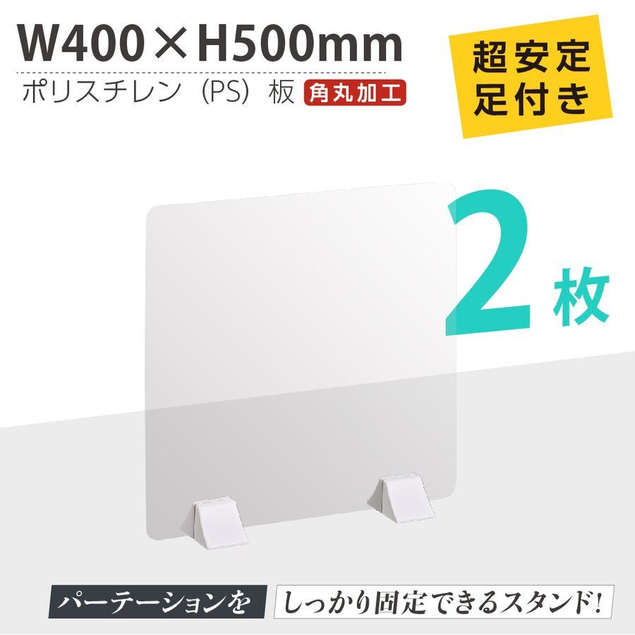 お得な2枚セット まん延防止等重点措置商品 透明パーテーション WW400×H500mm 軽くて丈夫なPS(ポリスチレン) 学校 病院 ps-abs-x4050-2set