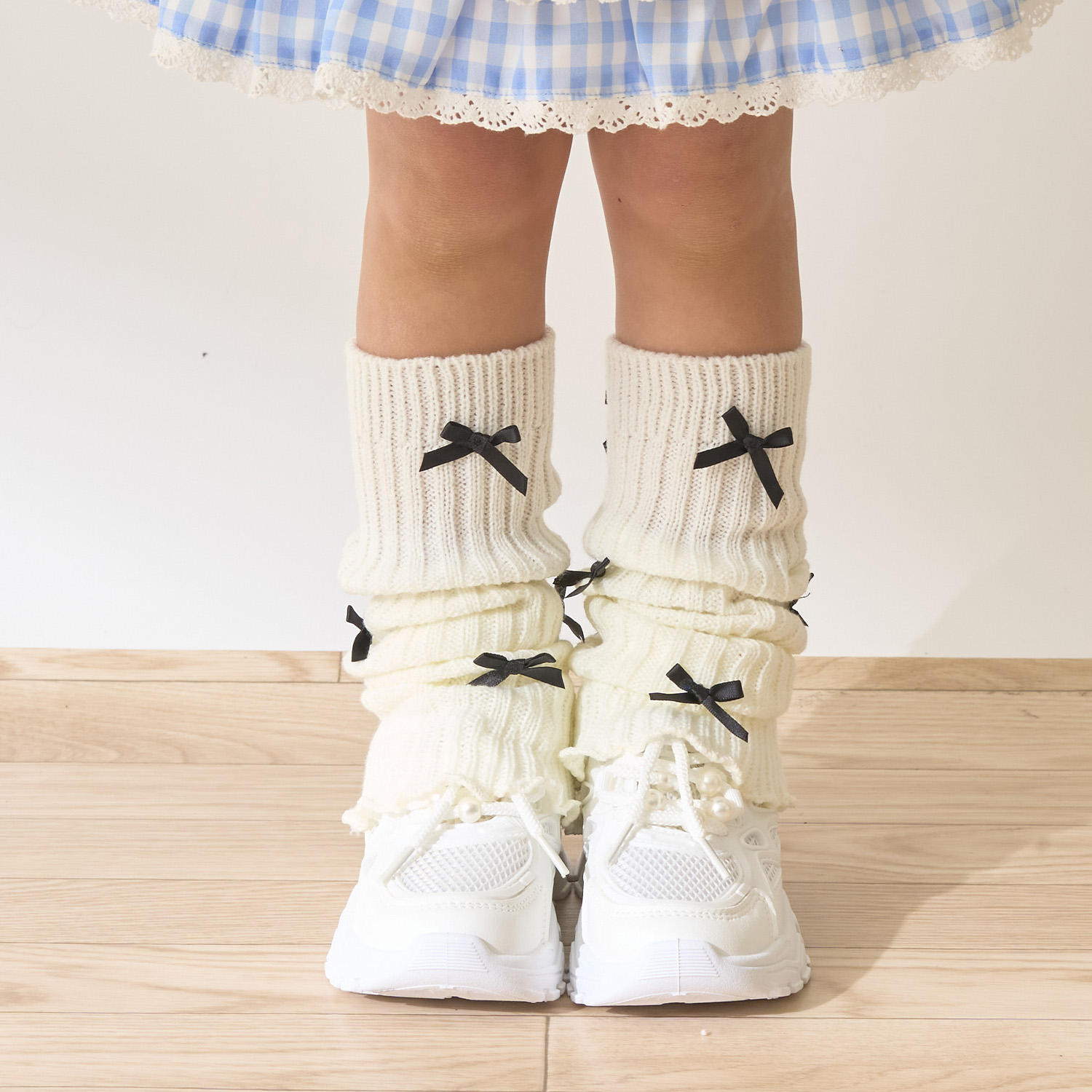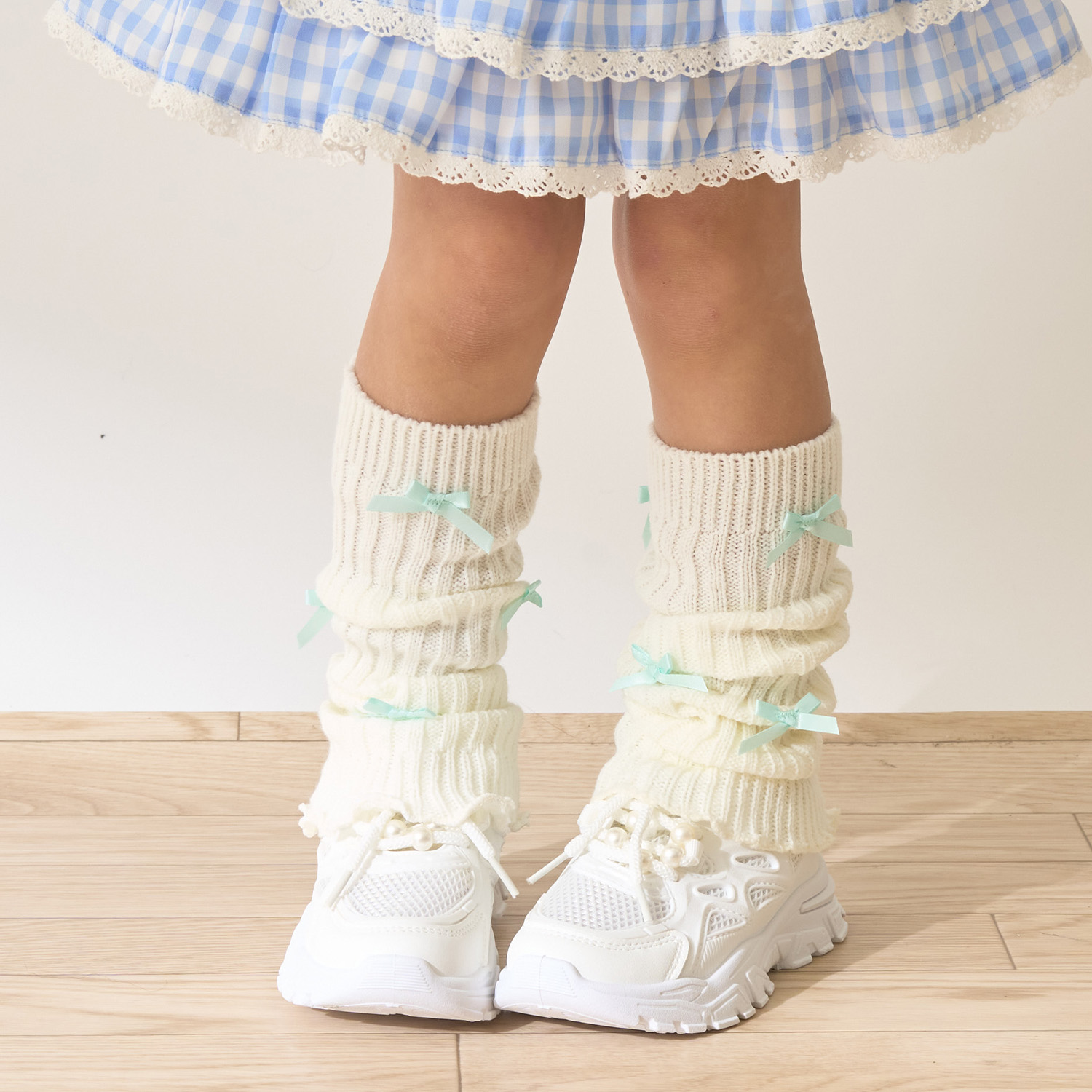 小さなリボンが散りばめられた、ガーリーなルーズソックス。