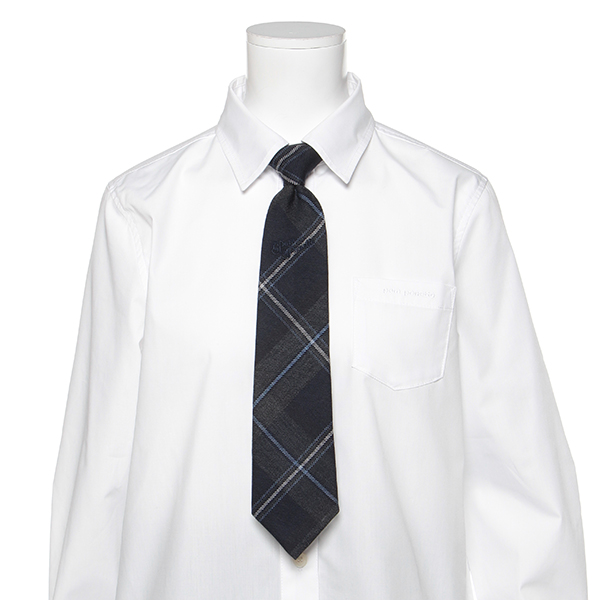 ■ワンチョイスするだけでランクが上がるネクタイです。可愛いだけでは物足りない、クールな女の子におすすめの大人チェック柄をセレクト! 本格的な見た目なのに、つけ外しはワンタッチで簡単な留め具式です。ガーリースタイルのハズシ役としても重宝します。さりげなくも程よく主張するロゴ刺しゅうもポイントです。※ブラウスは参考商品です