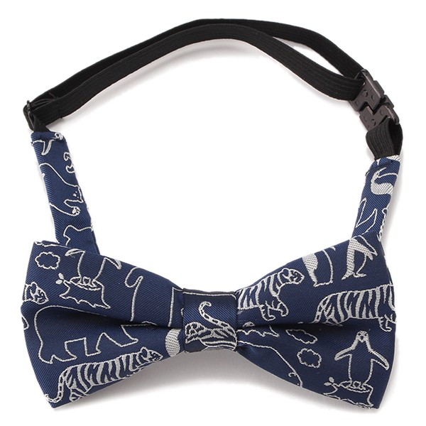 ■所狭しと描かれた動物刺しゅうが着こなしをポップにする蝶ネクタイです。しっかりとしたハリ感のある風合いなのでおめかしシーンにしっかり対応。アジャスターでのサイズ調整やワンタッチ装着などきちんとアイテムでもお子さま仕様なのがうれしいポイントです。