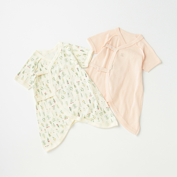 ■洗い替えに重宝するコンビ肌着の2枚セットです。かけ違い防止のために内側ボタンの色を変えた工夫は、新米ママパパや急いでいる日にうれしいところ。さらにヒモもセットし、サイズ調節が簡単です。オーガニックコットンを使用したり、縫代を外縫いにすることで、赤ちゃんへのストレスも軽減しました。内側にはお名前を記入できるタグつき。【おすすめの着用時期は春夏シーズン】【透け感】やや透ける【生地の厚さ】薄い【伸縮性】あり【裏地】なし【ポケット】なし