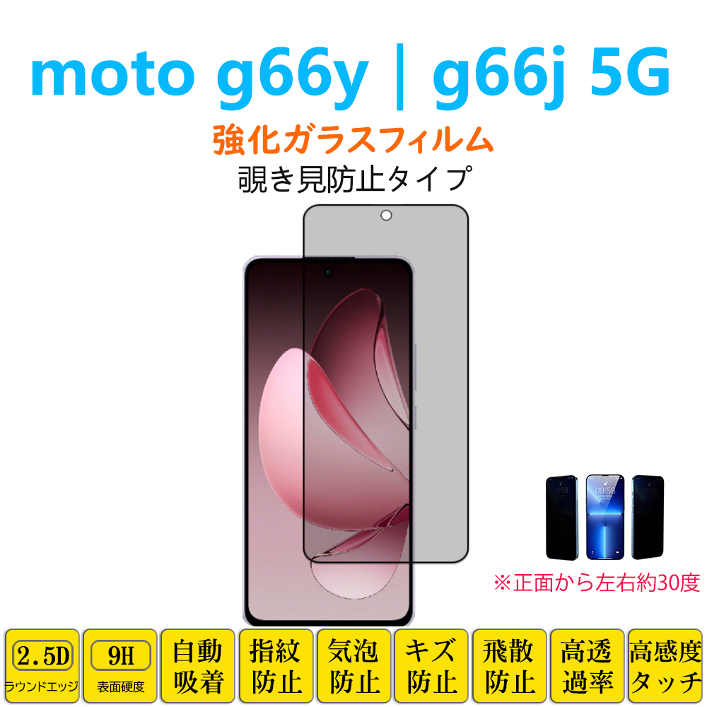 moto g66y g66j 5G フィルム 左右覗き見防止30度 強化ガラスフィルム 自動吸着 指紋防止 画面保護シール モトジーシックスティシックス スクリーンプロテクター