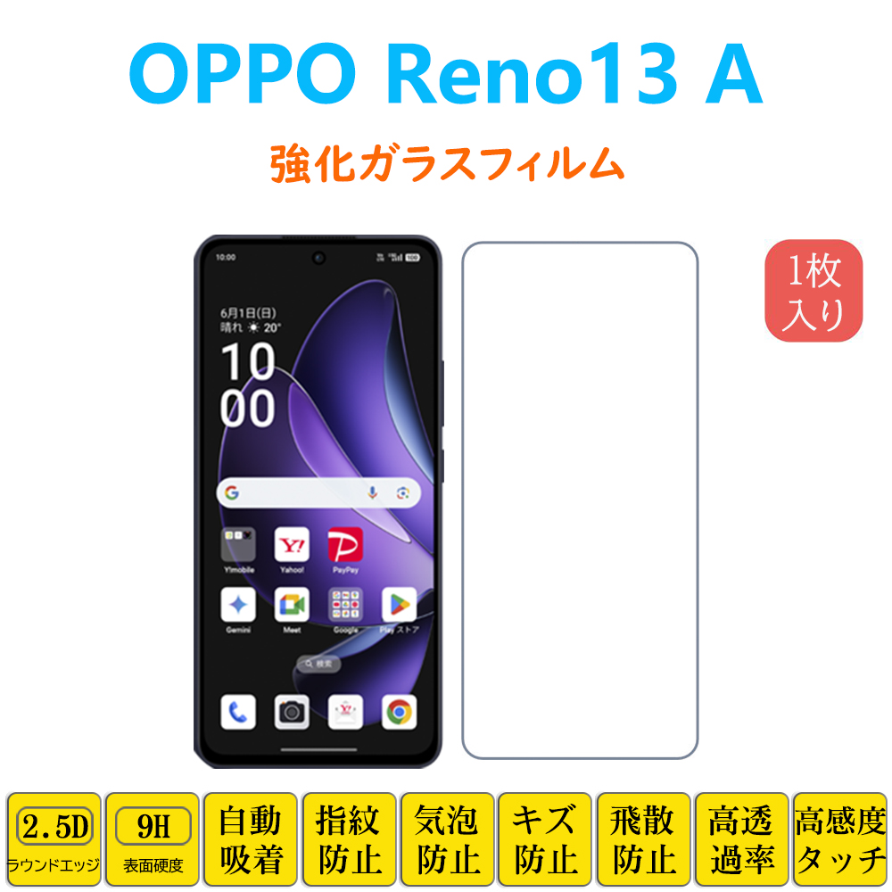 OPPO Reno13 A フィルム 液晶保護 強化ガラスフィルム 自動吸着 オッポ サーティーン エー 指紋防止 低反射 画面保護 シートシール スクリーンプロテクター