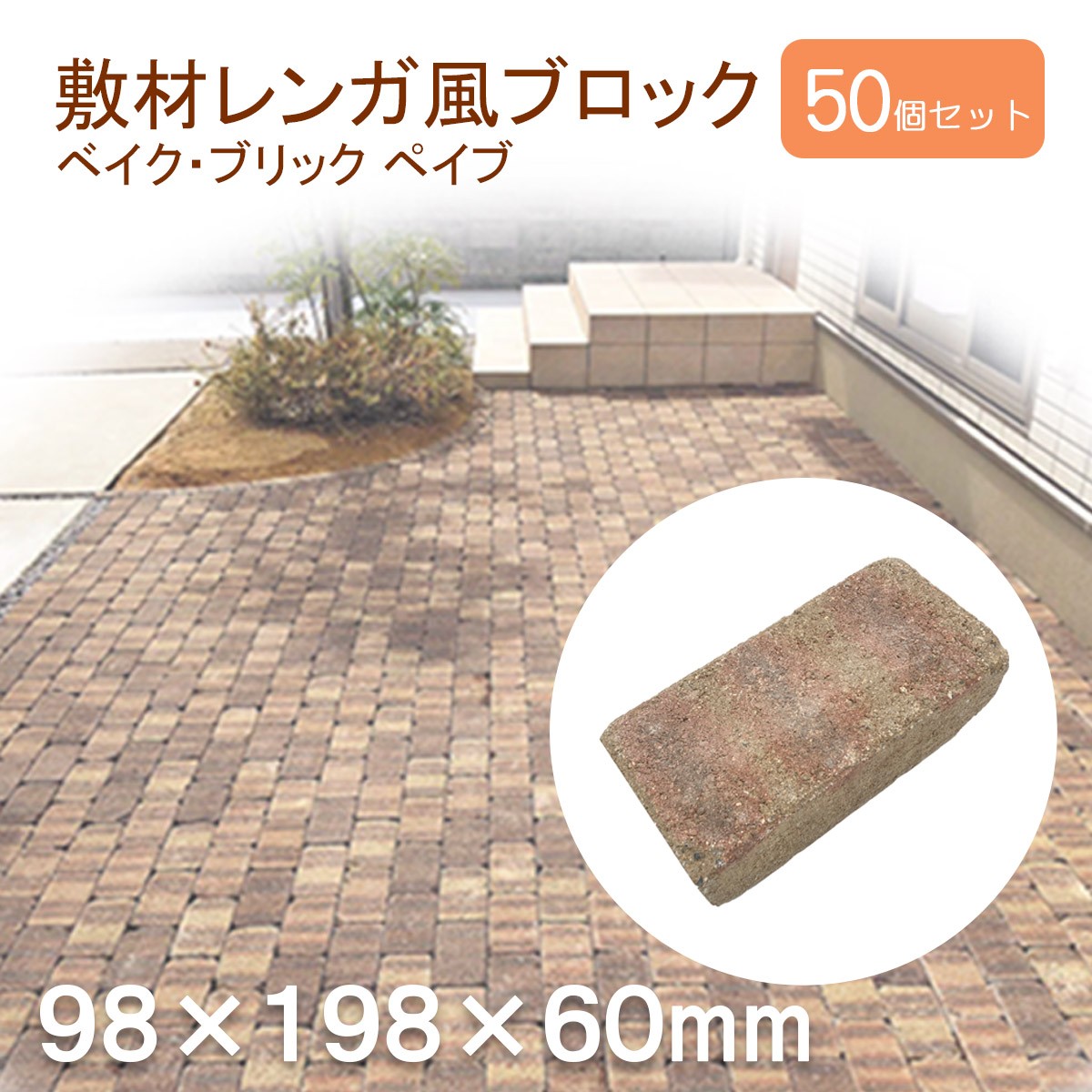 ベイクブリック ペイブ 正方形(98×98×60mm)20個セット 全3色 イン...