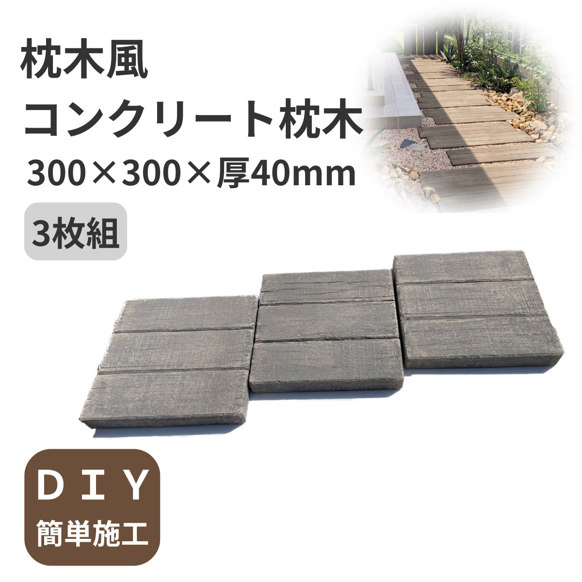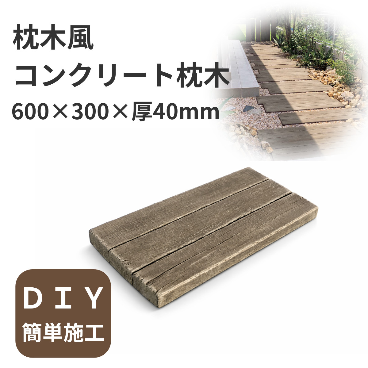 お庭や通路に置くだけで枕木風のおしゃれな小路に。