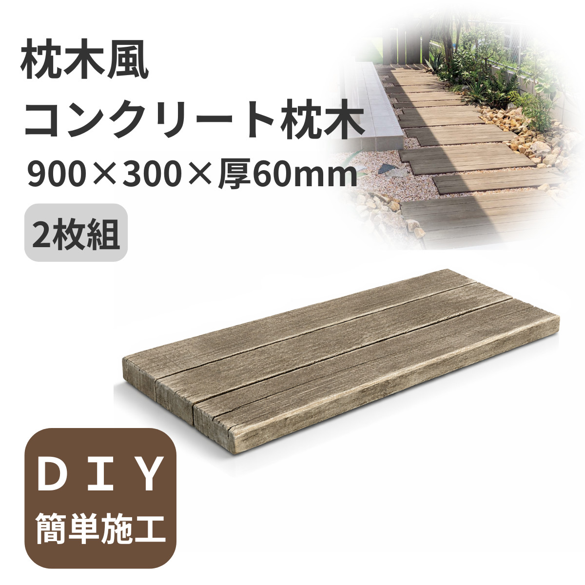 枕木風 コンクリート枕木 600×300×40mm ヴィンテージウッドペイブ 1枚 古木風 擬木 花壇 敷材 DIY 庭づくり