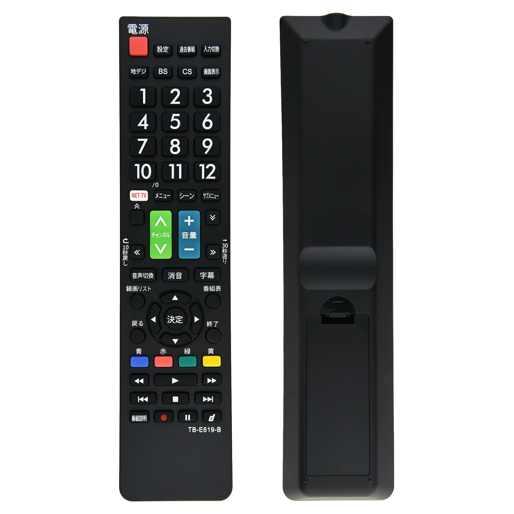 テレビ リモコン TB-E619-B 東芝 レグザ 多機種 互換 簡単操作 シンプル 設定不要 すぐに使える TOSHIBA REGZA 代替 代用 機種 故障 買い替え 交換 液晶 電池別売
