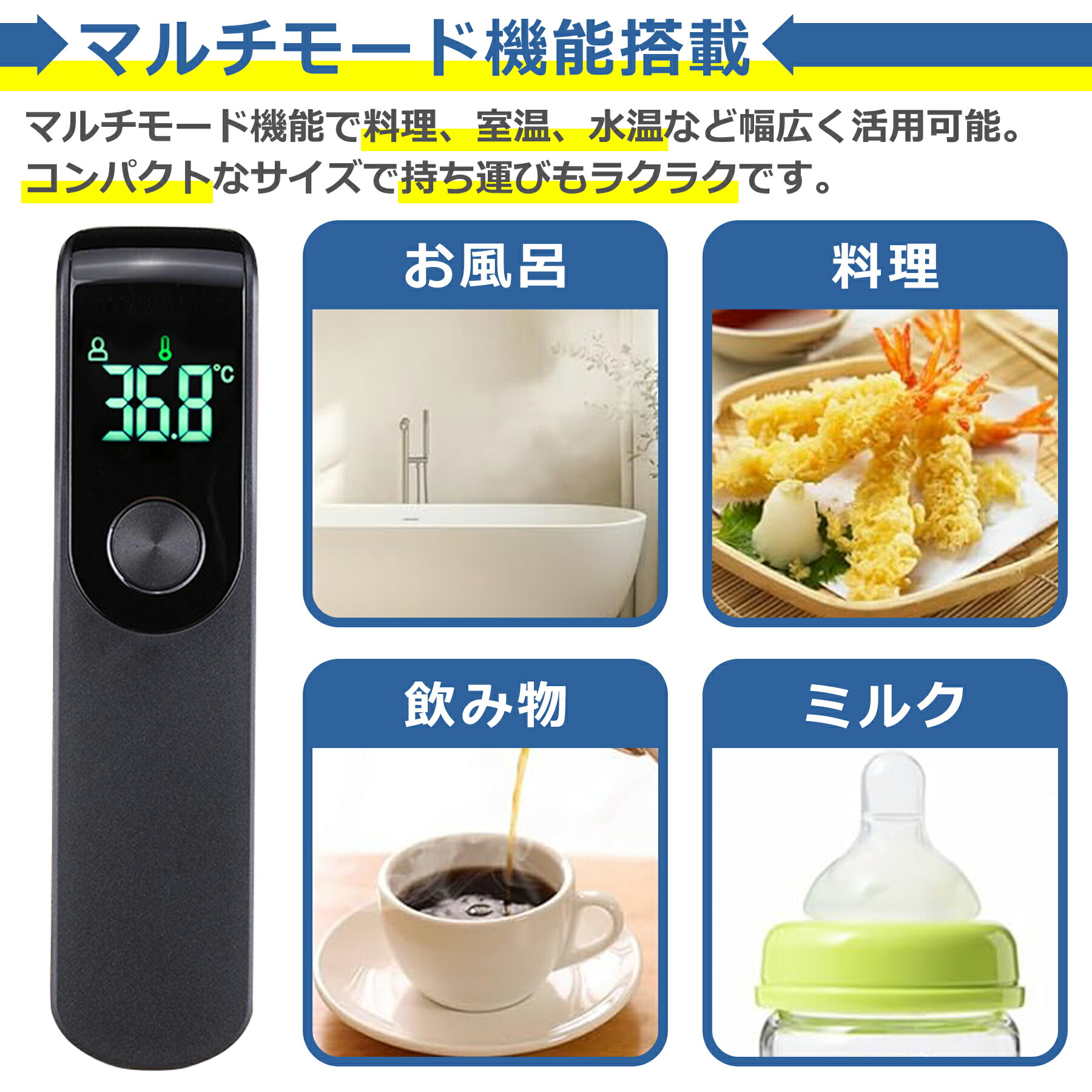非接触 体温計 温度計 高精度 全2色 LED 1秒測定 デジタル 電子 小型 コンパクト ミニ 赤外線 高速 持ち運びに便利 マルチモード 水温 ミルク プール ワンタッチ 多機能