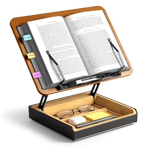 ・木調パネル設計高品質MDF材と金属部品を使用したスタンド。34×24cmの広々パネルで最大3kgまで対応。教科書、料理本、楽譜、雑誌、タブレット(Fire HD/Kindle)、ノートPCなど、さまざまなアイテムを安定して保持。快適な読書角度を実現