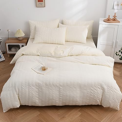 布団カバー シアサッカー生地 ホスール(HOSUR) 寝具カバーセット ピーチスキン加工 掛け布団カバー ボックスシーツ 枕カバー 優しい肌触