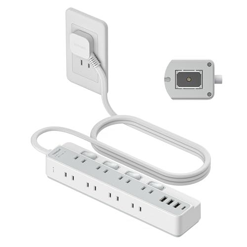 ・マグネット 電源タップ・壁掛けこの電源タップは強力なマグネットを備え、デスク周りやスチール家具など鉄製の場所にしっかり吸着し、空いたスペースで作業や掃除がしやすくなります。ACコンセントを8口すべて使用しても落下しにくい設計です。特別な設置作業は不要で、簡単に取り付けです。そして、鉄製以外の場所で使用しても全く問題ありません!2つの壁掛け用フック穴が追加されましたので、金属面や壁など、どこにでも使用で、机や床のスペースを取らずに好きな場所で電源を確保できます。