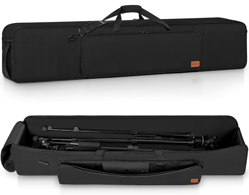 ・製品仕様外寸サイズ:長さ約101cmx幅約21cmx高さ約21cm。保管長40インチまでの三脚と互換性があります。三脚キャリングケースは十分なスペースがあり、ライトスタンド、ブームスタンド、傘、モノライト、LEDライト、フラッシュ、その他の写真機器やアクセサリーを収納するのに最適です。