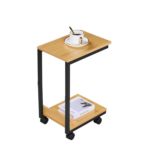 VECELO サイドテーブル キャスター付き 幅約37×奥行約26×高さ約53cm コの字型 2段収納 ミニテーブル ベッドサイドテーブル ソフ