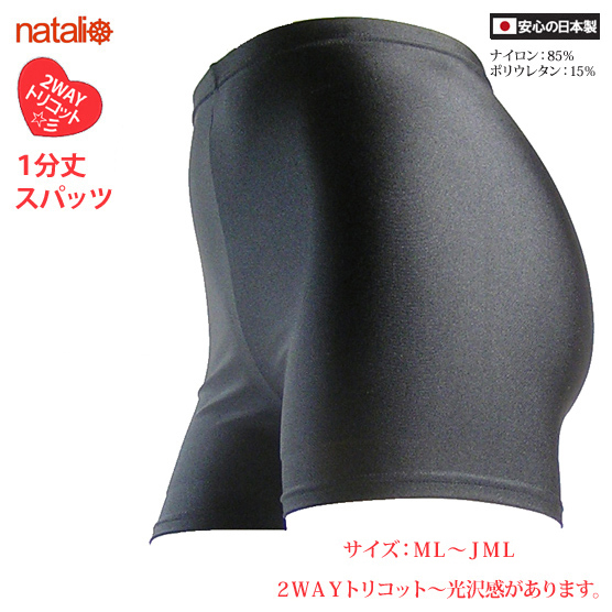 国産スパッツ 黒 1分丈 2WAYトリコット