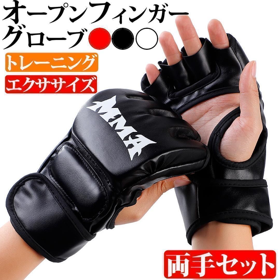 オープンフィンガーグローブ 両手セット ブラック レッド ホワイト MMA ボクシング 格闘技 グローブ 空手 キックボクシング 総合格闘技