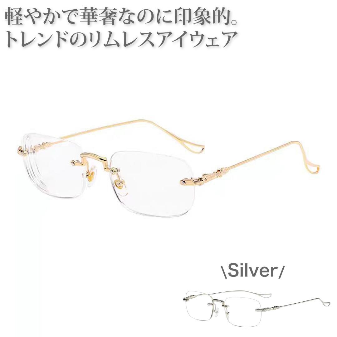 リムレス メガネ 伊達メガネ スクエア 韓国 y2k 90s 軽量 おしゃれ 高見え シルバー ゴールド メンズ レディース