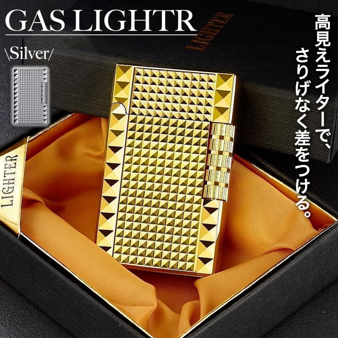 ピラミッドカット ガスライター ゴールド シルバー フリント式 高級感 おしゃれ メンズ 喫煙具 ギフト