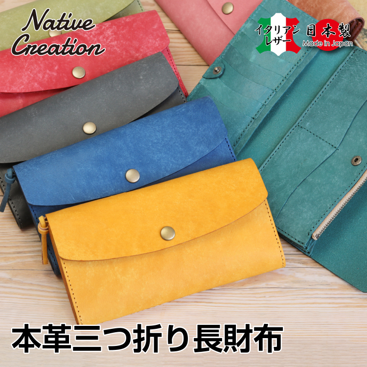 Native Creation ネイティブクリエーション イタリアンレザー 本革三つ折り長財布