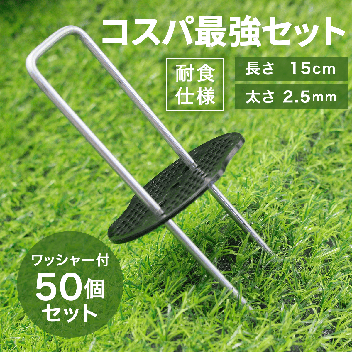 防草シート 固定ピン ピン 防草シート固定ピン u字ピン マルチ押さえ 黒マルチ 黒丸 シート押さえ 15cm 50本 ザバーン 互換品 押さえ 固定 シート押さえ シート押え 人工芝 防草シート 除草シート 雑草防止シート 雑草シート あぜシート マルチ ぼうそうシート レジャーシート ピン U字ピン uピン杭 黒丸付き ワッシャー ペグ スチール 亜鉛メッキ 丈夫 固定 爆買